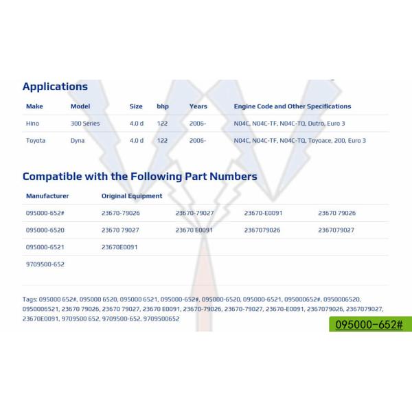 Model Number : 095000-6520 095000-652# 095000-6521 9709500-652 095000-9510 23670-E0091 23670-79026 2367079027
